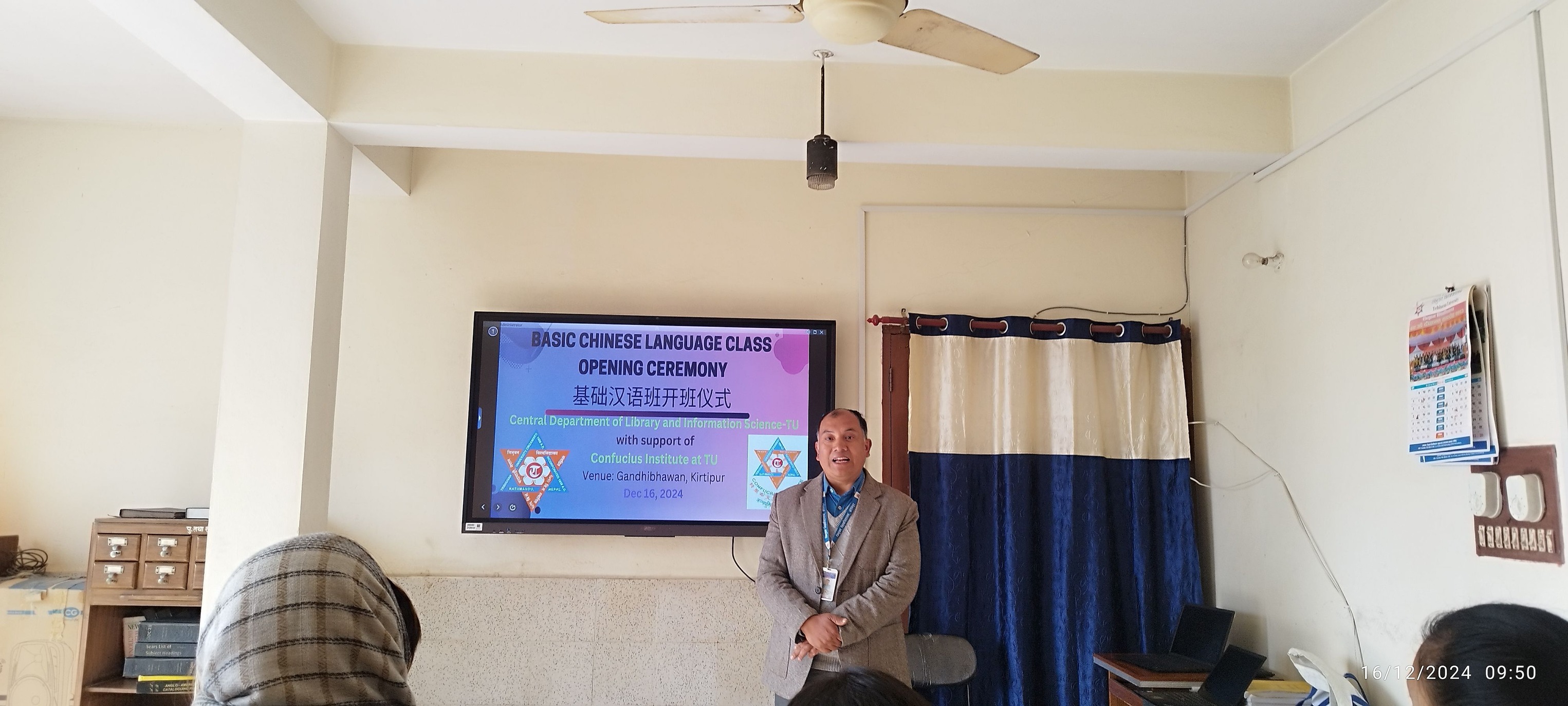 On Monday, December 16, 2024 (2081/09/01), the Central Department of Library and Information Science, TU, in collaboration with the Confucius Institute at TU (CITU), inaugurated a Basic Chinese Language Class for students and faculties. This significant initiative marks a step towards enhancing linguistic and cultural exchange.