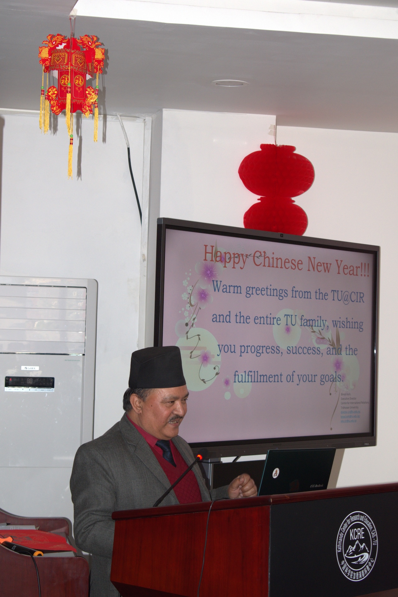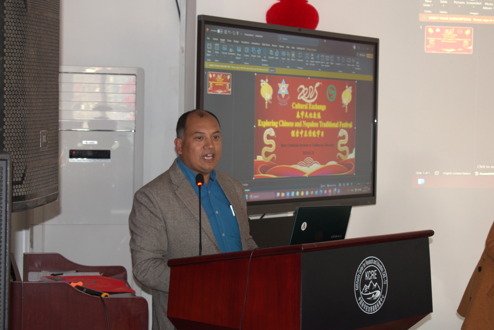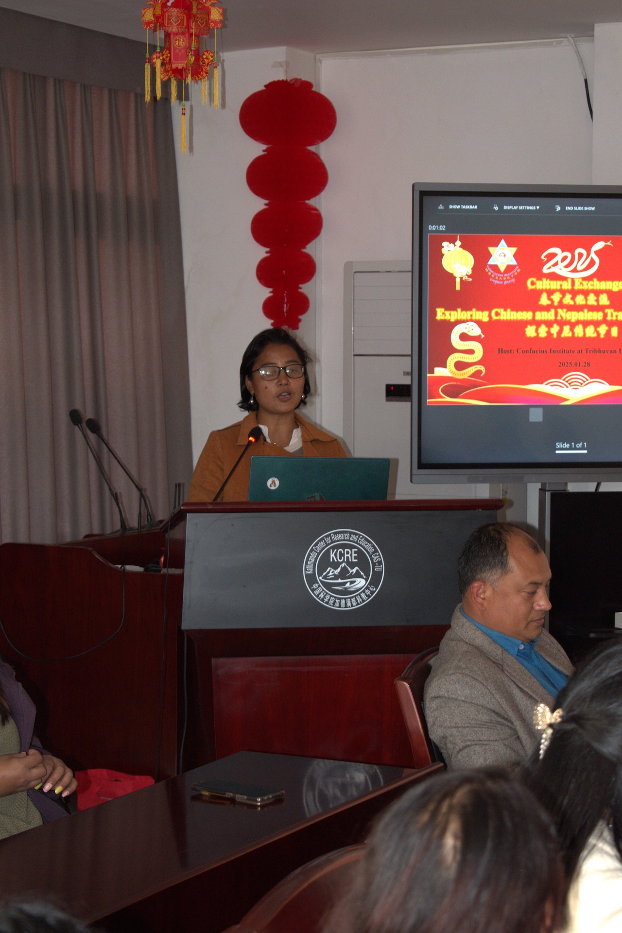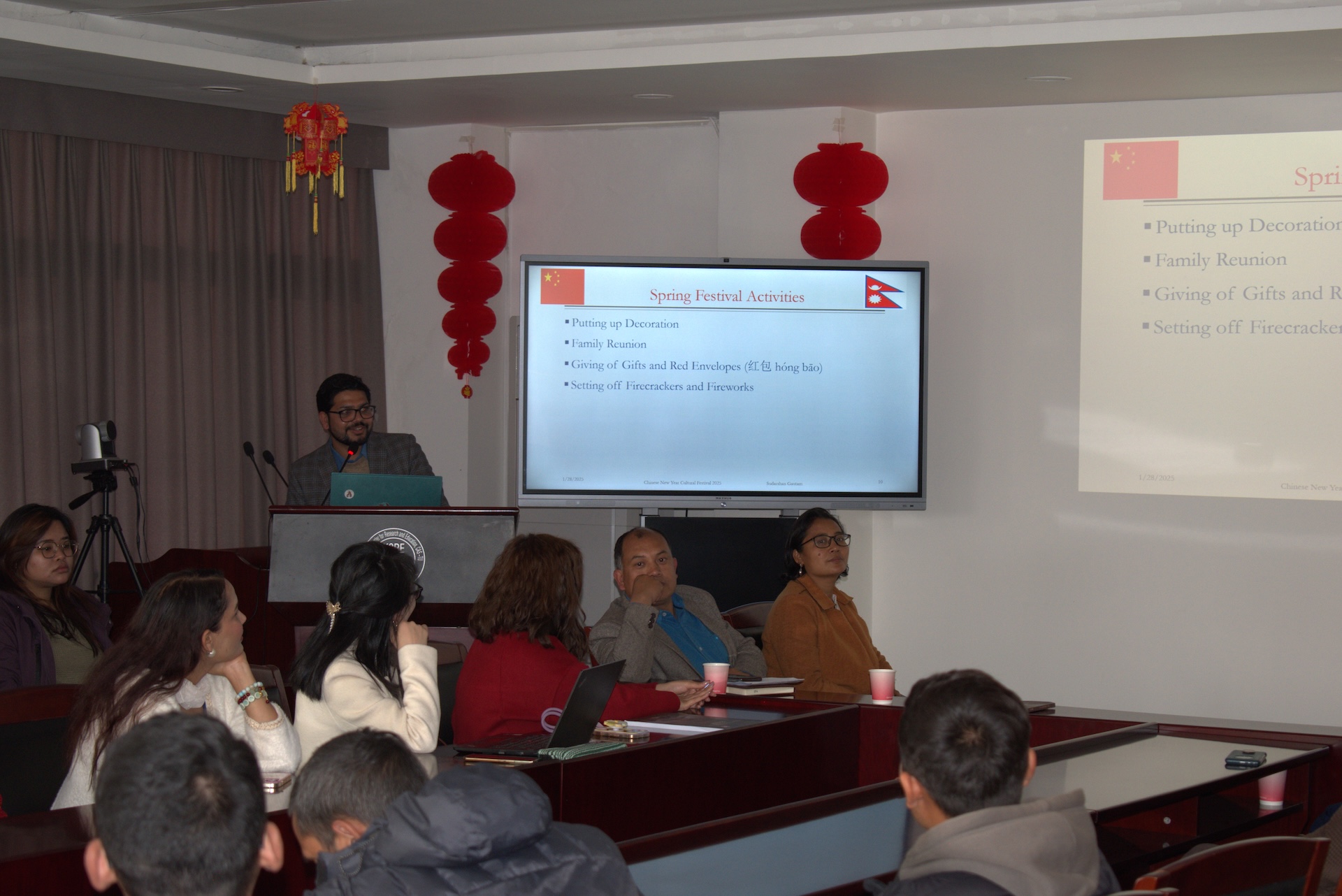 2025 年 1 月 28 日,特里布文大学孔子学院举行“春节文化交流:探索中尼传统节日”研讨会,特里布文大学国际关系中心主任、特里布文大学孔子学院中外方院长、特大孔院各教学点负责人、LRI 孔子课堂负责人、孔院师生等70 余人共同参加了本次春节文化研讨会。