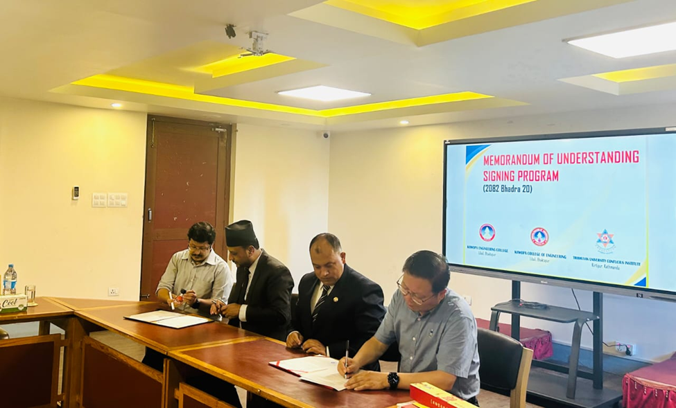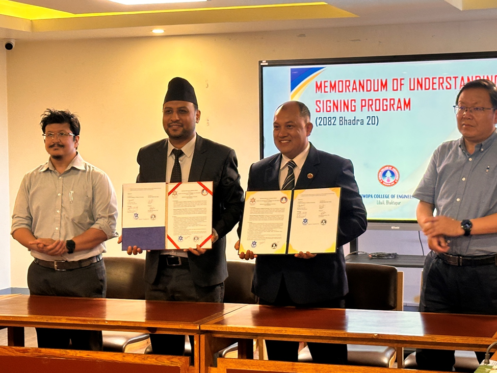 The Confucius Institute at Tribhuvan University (CI@TU) formally entered into a Memorandum of Understanding (MoU) with Khwopa College of Engineering (affiliated with Tribhuvan University) and Khwopa Engineering College (affiliated with Purbanchal University) for the establishment of Chinese language teaching centers. The signing ceremony was held at the Khwopa College of Engineering in Bhaktapur.